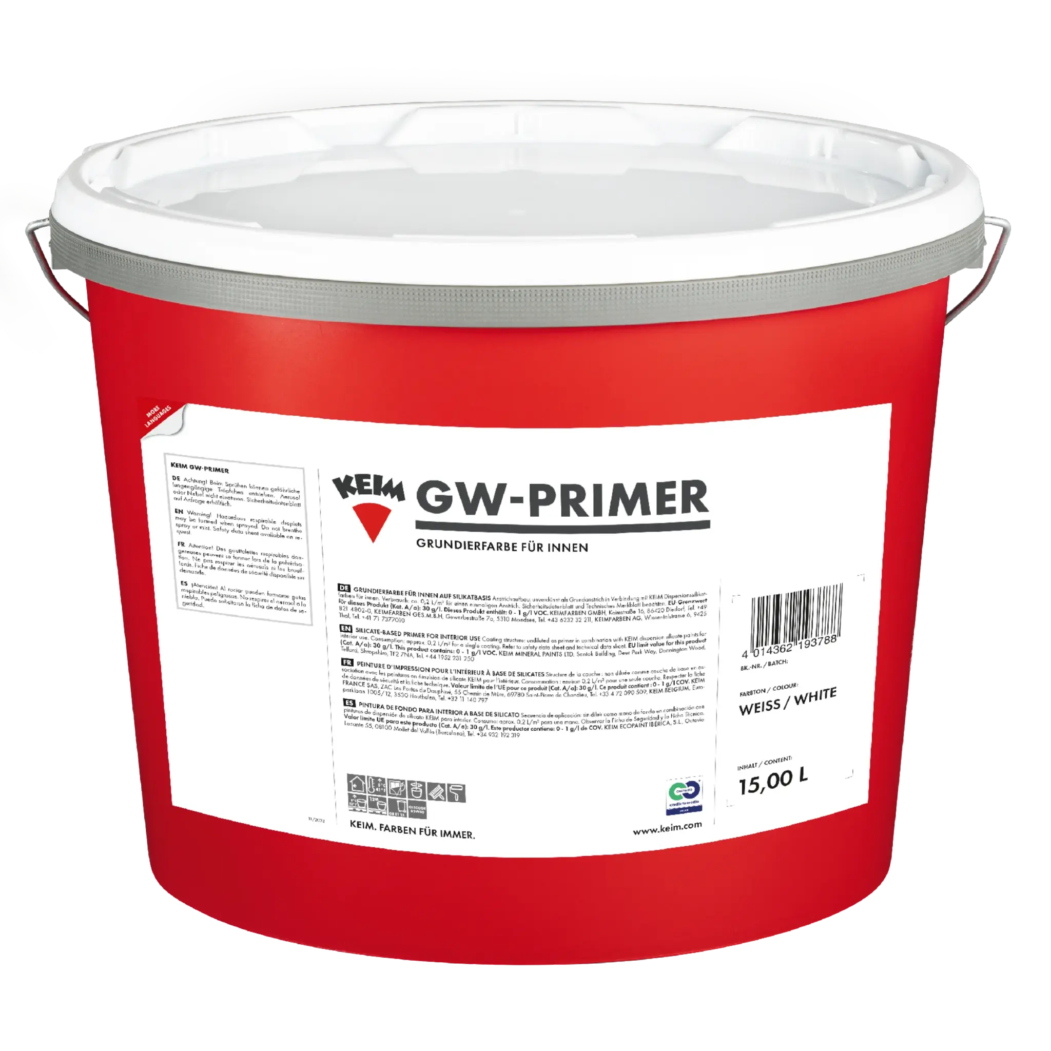 Keim GW-Primer voorheen Grondeerwit of GrundierWeiss is een grondering op basis van silicaat voor binnen toepassing met minder dan 5% organisch aandeel. GW-Primer wordt toegepast als grondlaag op zuigende ondergronden zoals gips kartonplaten en uitgerepareerde ondergronden, voor een afwerking met Ecosil-ME of Biosil zodat een homogeen zuigende ondergrond ontstaat en de hechting op bestaande verflagen bevorderd wordt. Keim GW-Primer wordt onverdund aangebracht. Enkel in wit leverbaar.