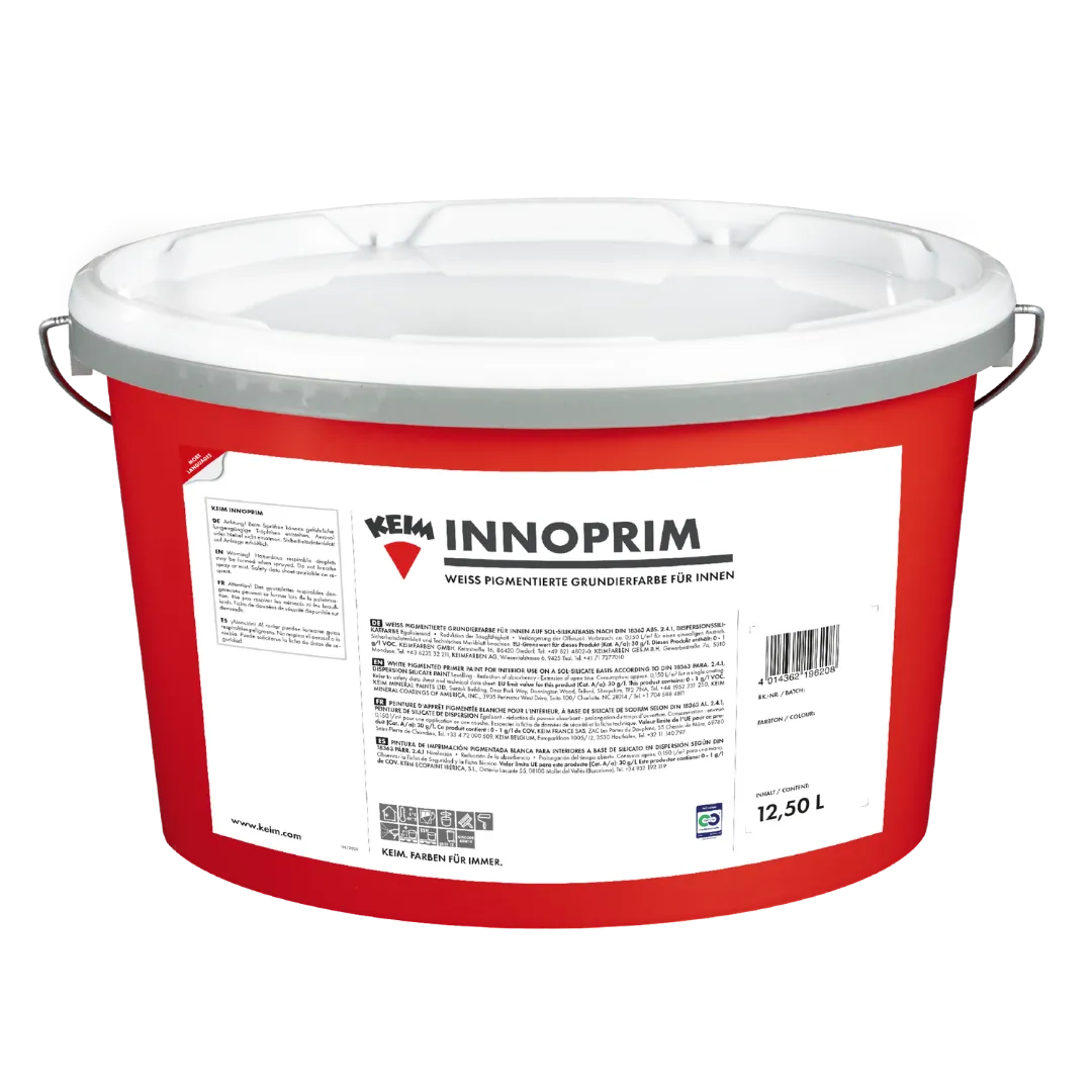 Duurzaamheid staat centraal: KEIM Innoprim is vrij van conserveermiddelen, weekmakers en oplosmiddelen, en bovendien Cradle to Cradle Certified® Silver met een Material Health Certificate™ Gold. Zo kiest u niet alleen voor kwaliteit, maar ook voor een gezond binnenklimaat en een verantwoorde materiaalkeuze.